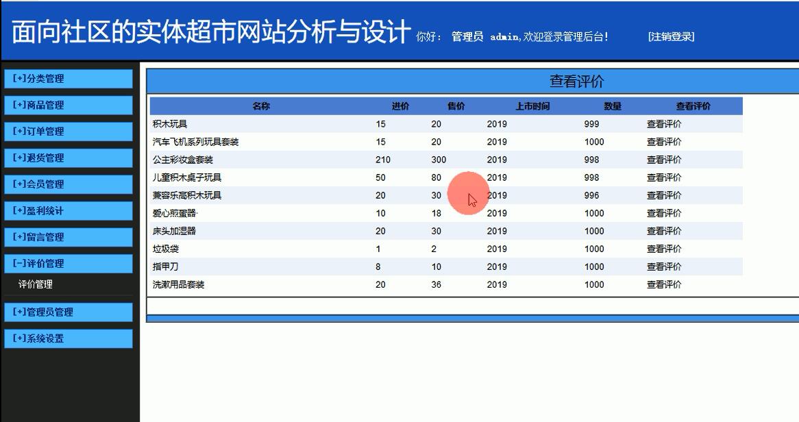 (5)管理员可以通过浏览器对注册用户或商品进行操作,包括添加、修改、查询、删除等功能。