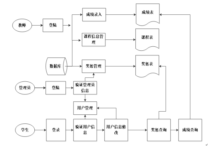 教师用户在登陆之后可以管理自己的个人资料,可以对学生的奖惩信息进行管理。学生的成绩信息以及挂科学生信息进行管理。此外还可以管理自己所任教的课程信息。