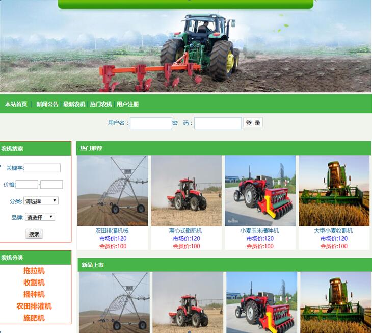 ③ 农机展示功能。网站将所有农机信息从数据库中提取出来显示在网站中,用户可以浏览网站。