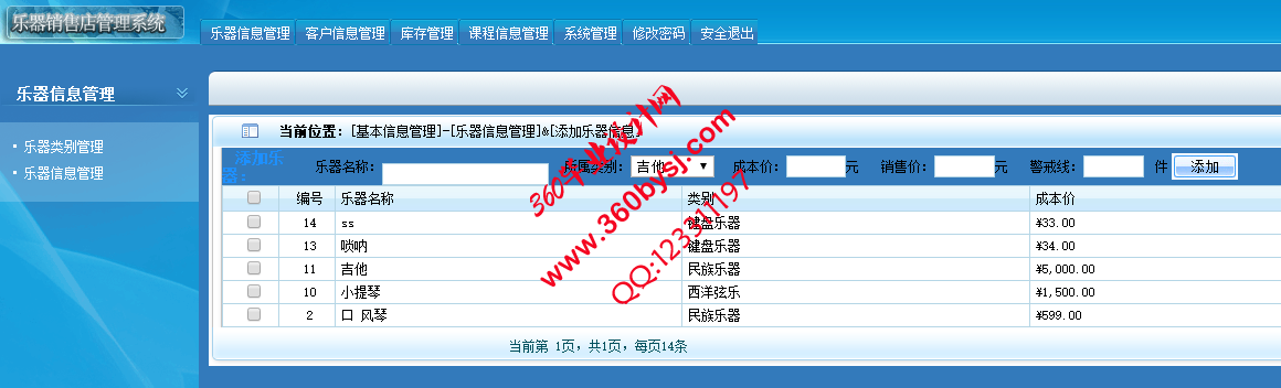 功能介绍本系统是一个网站形式的乐器销售店日常业务管理系统,实现乐器销售店日常业务所需的相关管理功能,以此达到高效,便捷的管理,提高琴行的工作效率,增加营业效益。本课题研究的基本内容主要基于乐器行业行日常的事务,详细分为:乐器的销售,乐器的进货后勤管理,乐器库存管理,排练房的安排,社员信息的管理,指导老师的管理,乐器课时的安排,账单管理以及系统管理、安全退出等管理功能来对系统进行维护更新。系统结构和功能是系统设计的核心部分,通过系统结构图可以清楚的看出整个系统的结构。针对每个结构模块分别做分析,为以后的设计和实现打下基础。系统总体框架如图3-1所示。 主要内容包括: 乐器信息:进货管理,销售信息记录,库存管理,账单管理; 客户信息:录入客户信息,预定或购买内容和日期,或对预约进行编辑及管理; 课程信息:安排排练房,社员信息及指导老师的管理,课程安排; 系统管理。 |