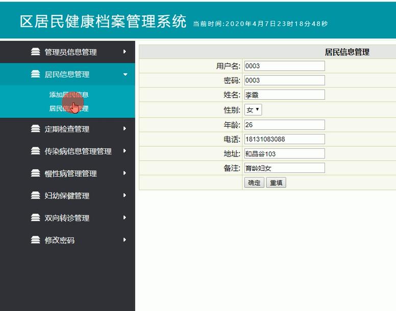 2.居民信息管理,对本地区内的居民基本信息进行管理