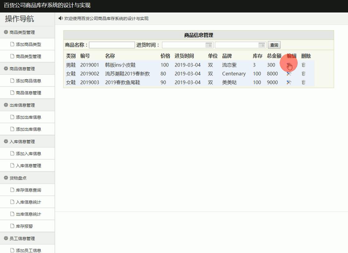 项目编号:asp.net1051-百货公司商品库存系统#毕业设计