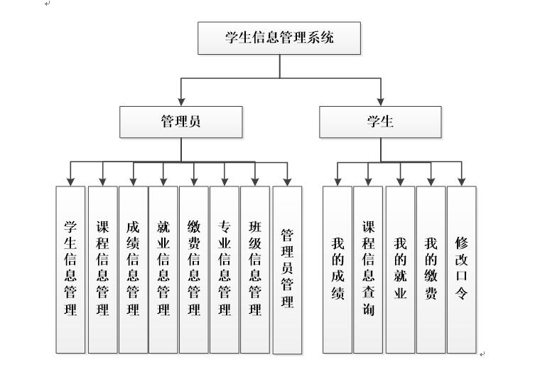 管理员:维护系统内的学生信息,课程信息,就业信息,成绩信息,缴费信息,维护系统内的一些基本设置。