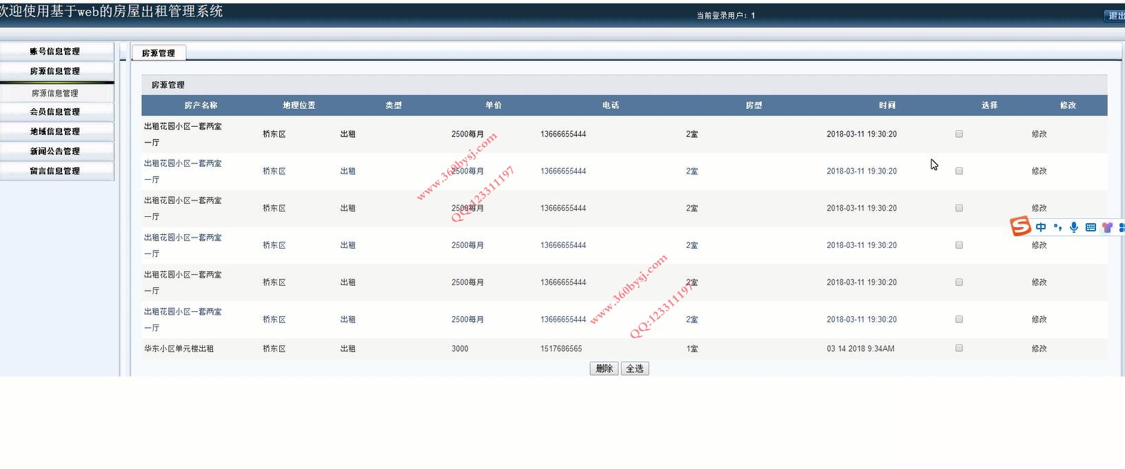 (2)房源信息管理:添加出租信息,管理出租信息等